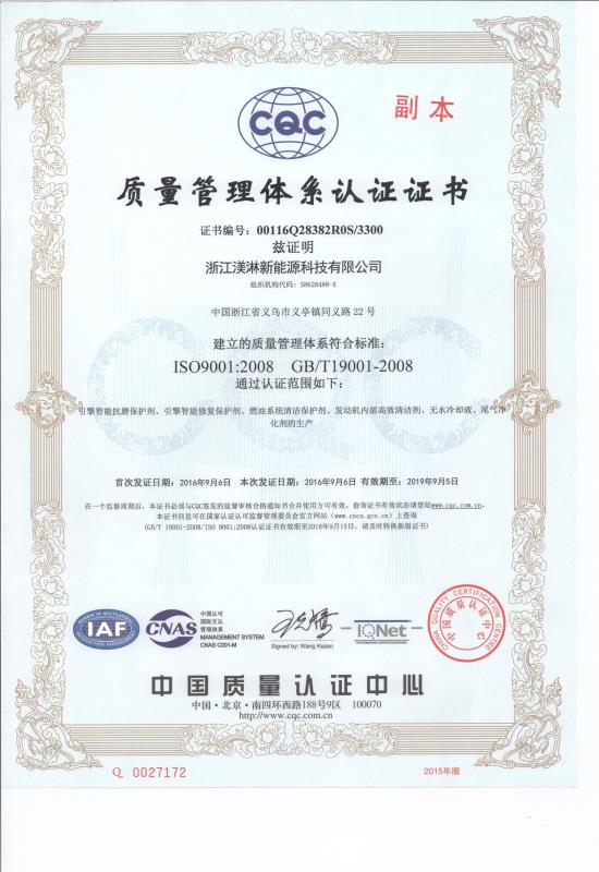 浙江渼淋新能源科技有限公司,是一家致力于新能源的探究及納米高科技領(lǐng)域產(chǎn)品研發(fā)、生產(chǎn)、銷售為一體的高科技企業(yè)。企業(yè)還致力于各種軍事、化工、航天、航海、重型工業(yè)、汽車工業(yè)等行業(yè)的物理、化學(xué),納米尖端高科技領(lǐng)域產(chǎn)品的探究,在“汽車后市場(chǎng)”領(lǐng)域具有尖端的科研成果,是全球研發(fā)安全,高效,環(huán)保,新型汽車養(yǎng)護(hù)美容系列產(chǎn)品的主導(dǎo)者。